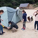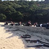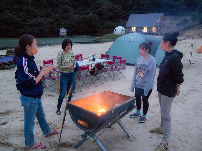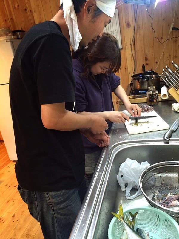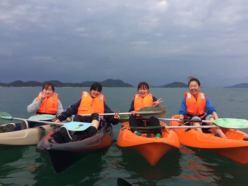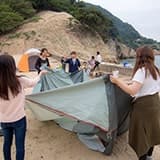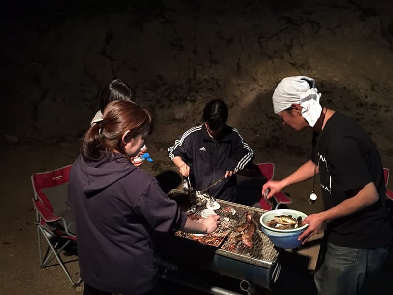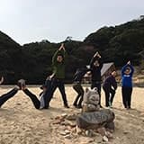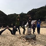Training place is the desert land called “Arigatou” in Yamaguchi Prefecture. “Arigatou” was made by Kuniaki Shimizu as “The best interesting campground and desert island in Japan” In training, we made a fire and cooked, also did activity such as fishing, canoeing and campfire. We become better acquainted through those experiences.